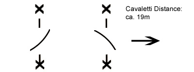 If the horse needs some help in understanding, position him as for a volte over the cavaletti, then change for the next one (see below).